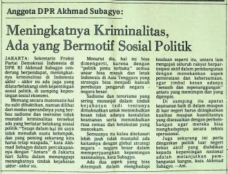 Sekretaris Fraksi Partai Demokrasi Indonesia di DPR RI Akhmad Subagyo berpendapat, meningkatkannya kriminalitas di Indonesia di awal tahun 1983-an didominasi oleh kepentingan sosial politik daripada kepentingan sosial ekonomi