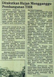 Awal pekerjaan Taman Hiburan Rakyat (THR) terancam terganggu karena musim hujan. Namun Ketua Bappeda KMS Ir. Moh. Dahlan percaya bahwa pihak investor sudah memepersiapkan segala kebutuhannya untuk mengatasi hal ini.