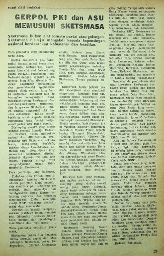 PKI dan ASU memusuhi Sketmasa. Padahal, Sketsmasa bukan alat sesuatu partai atau golongan. Sketsmasa hanya mengabdi kepada kepentingan nasional berdasarkan kebenaran dan keadilan.