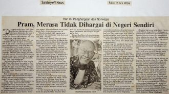 Pramoedya dengan suara bergetar dan pandangan mata yang menerawang mengatakan bahwa di negerinya sendiri ia tidak dihargai, bahkan hak-haknya telah dirampas, dirampok, dan dipenjara tanpa diadili.