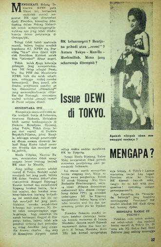 Issue Dewi di Tokyo santer ramai karena Nyonya Ratna Sari Dewi Sukarno telah mengobral cerita tentang kedatangan Bapak dari Si anak yang sedang dikandungnya.