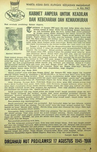 Tanggal 17 Agustus 1966 tepat kemerdekaan berusia 21 tahun, tetapi kemakmuran masih belum terlihat gejalanya. Namun, dengan adanya orde baru, maka ada harapan baru dengan pemimpin baru dan kabinet barunya.