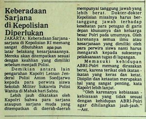 Keberadaan sarjana-sarjana di Kepolisian RI dibutuhkan dari berbagai latar belakang keilmuan. Para sarjana ini akan ditempatkan sesuai keahlian yang dimiliki sebelum menjadi polisi. Hal ini merupakan pengarahan dari Kapolri Letnan Jenderal Polisi Anton Soedjarwo kepada para perwira siswa Sekolah Militer Sukarela Polisi Wanita di Mabak.