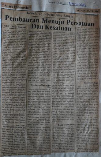 Himbauan pemerintah terhadap pembauran tidak saja harus ditekankan pada masyarakat keturunan Cina tetapi juga penduduk pribumi sendiri untuk dapat menerima masyarakat keturunan Cina sebagai saudara dan bangsa sendiri. Kesadaran sebagai satu bangsa yang hidup dalam lingkungan Nusantara ini harus benar-benar tercermin pada diri masing-masing agar pembauran cepat terlaksana menuju persatuan dan kesatuan bangsa.