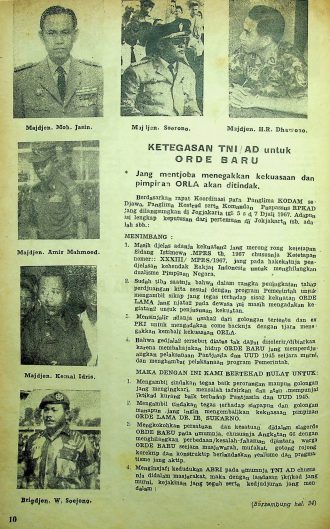 Berdasarkan hasil rapat koordinasi, para pimpinan TNI AD menegaskan apabila ada yang melaksanakan kegiatan seperti zaman orde lama, maka akan ditindak. Semuanya harus sesuai dengan Pancasila dan UUD 1945.