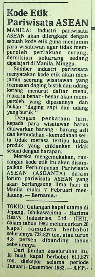 Industri pariwisata ASEAN akan dilengkapin dengan sebuah kode etik guna menjamin para wisatawan agar tidak memperoleh perlakuan curang. Rancangan kode etik ini akan disampaikan Perhimpunan Pariwisata ASEAN (ASEANTA) dalam forum pariwisata ASEAN.