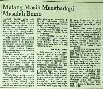 Sejak 1978, jumlah bemo roda tiga di Kota Malang sebenarnya sudah dibatasi. Namun, karena kota-kota lain seperti Jakarta juga membatasi jumlah bemo, Malang akhirnya menjadi tempat pemindahan bemo secara tidak resmi.