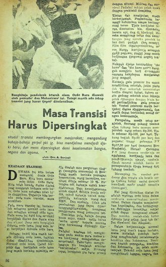 Masa transisi yang terjadi sangat membingungkan masyarakat. Masyarakat telah banyak terkena pengaruh komunis sehingga harus dipersingkat masanya demi keselamatan bangsa, negara, dan agama.