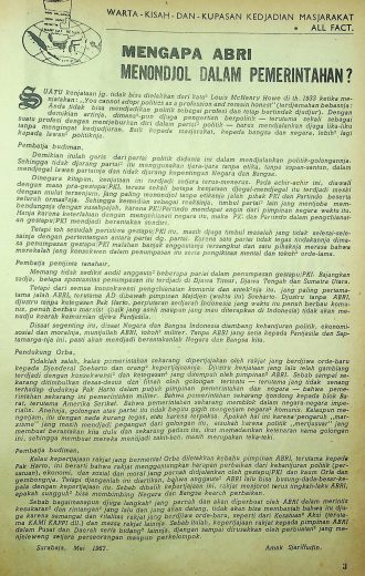 Ketika negara Indonesia di ambang kehancuran, ABRI muncul dalam penumpasan PKI dan mengembalikan Indonesia pada kemurnian Pancasila.