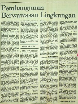 Dalam opininya, Emil Salim menegaskan bahwa pembangunan nasional harus disertai kepedulian terhadap kelestarian lingkungan agar pertumbuhan ekonomi tidak merusak daya dukung alam. Ia menyoroti berbagai kerusakan lingkungan akibat mengejar pertumbuhan jangka pendek. Ia juga mendorong agar setiap perencanaan pembangunan mengintegrasikan aspek lingkungan melalui prinsip pembangunan berkelanjutan, pengawasan ketat, serta edukasi publik, sehingga kemajuan ekonomi dapat dicapai tanpa mengorbankan kualitas hidup generasi mendatang.