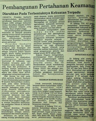 Presiden Soeharto mengemukakan bahwa ABRI merupakan inti dari pertahanan keamanan nasional. Pembangunan pertahanan keamanan ini menjadi penting dalam mengamankan lingkungan laut, sehubungan dengan Wawasan Nusantara.