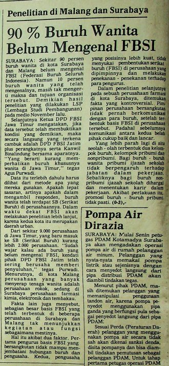 LSP (Lembaga Studi Pembangunan) melakuakan penelitain yang menyatakan bahwa banyak buruh yang belum mengenal FBSI (Federasi Buruh Seluruh Indonesia). Bahkan 10% buruh wanita yang telah mengenalnya, masih tidak mengerti tujuan dari organisasi ini didirikan.