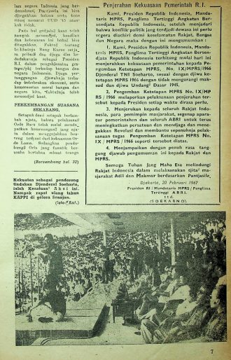 Surat penyerahan kekuasaan Pemerintah RI yang diwakili Presiden RI, Mandataris MPRS, Panglima tertinggi ABRI dan ditandatangani oleh Soekarno.