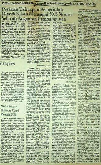 Saat menyampaikan Nota Keuangan dan RAPBN 1983–1984, Presiden Soeharto menekankan pentingnya peranan tabungan pemerintah dalam pembangunan nasional. Dinyatakan bahwa tabungan pemerintah diperkirakan akan menyumbang sekitar 70,5% dari seluruh anggaran pembangunan.