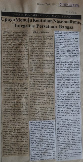Sudah 37 tahun negeri ini merdeka, namun pembauran bangsa masih timpang, sehingga permasalahan ini menjadi isu nasional. Pembauran yang digalakkan itu kurang merata dan lumpuh. Oleh karena itu, pemerintah membentuk badan koperasi yang melibatkan non pribumi diperluas baik di desa maupun di kota-kota besar.