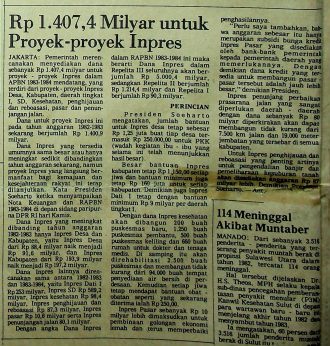 Pemerintah merencanakan penyediaan dana sebanyak Rp 1.407,4 milyar untuk proyek-proyek Inpres dalam APBN 1983-1984. Pendanaan ini ditujukan pada proyek-proyek Inpres desa, kabupaten, daerah tingkat I, SD, kesehatan, penghijauan dan reboisasi, pasar dan pembangunan jalan.