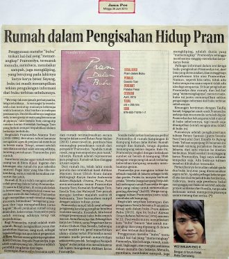 Bagi Pramoedya, rumah adalah mata sejarah. Rumah mengisahkan peran dan ketokohan Mastoer, sang ayah, sebagai kepala keluarga maupun tokoh pergerakan di Blora. Mastoer, seorang aktivis pergerakan Boedi Oetomo. Kepada Pramoedya juga anak-anak yang lain, Mastoer adalah pendidik yang keras dan tegas.