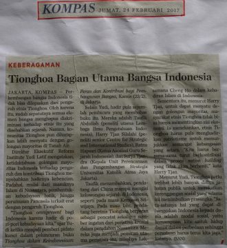 Perkembangan bangsa Indonesia tidak bisa dilepaskan dari pengaruh etnis Tionghoa. Sudah sepatutnya semua elemen bangsa menghapus diskriminasi terhadap etnis tersebut. Namun, komunitas Tionghoa juga diharapkan lebih menyatu dengan golongan mayoritas di Tanah Air. Menurut Direktur Eksekutif Reform Institute, Yudi Latif, Tionghoa perlu terlibat banyak dalam jabatan publik untuk merekatkan kereganggan sosial yang selama ini menimbulkan prasangka.