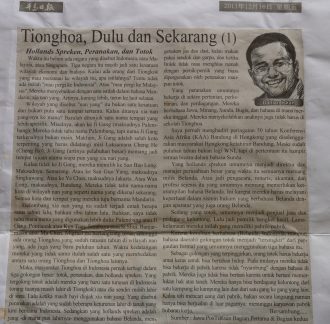 Masyarakat Tionghoa di Indonesia pernah terbagi dalam tiga golongan besar, yaitu totok, peranakan, dan hollands spreken. Golongan totok adalah mereka yang baru satu turunan di Indonesia (orang tuanya masih lahir di Tiongkok) atau dia sendiri masih lahir disana. Peranakan adalah yang sudah beberapa keturunan lahir di tanah yang kini bernama Indonesia. Sedangkan hollands spreken merupakan orang Tionghoa yang dimanapun lahirnya menggunakan bahasa Belanda, memakai jas dan dasi, dan tidak mengikuti tradisi Tionghoa.