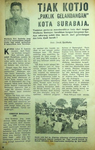 Walikota Kolonel Soekotjo yang masih memerlukan banyak usaha lagi untuk kebersihan dan perbaikan kota Surabaya.