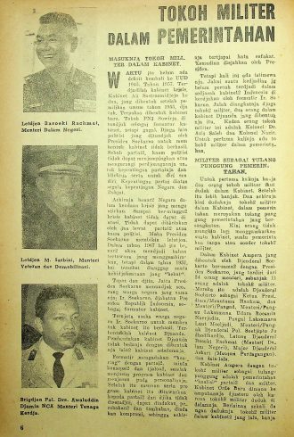 Berikut adalah tokoh-tokoh militer dalam pemerintahan tahun 1967: Letjen Basoeki Rachmat (Menteri Dalam Negeri), Letjen M. Sarbini (Menteri Veteran dan Demobilisasi), Brigjen Pol. Drs. Awaluddin Djamin NCA (Menteri Tenaga Kerja), Mayjen Soetjipto, S.H (Menteri Pertanian), Laksamana Madya Jatidjan (Menteri Maritim), Mayjen Azhari Danudirdjo (Menteri Perdagangan).