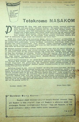 Bung Aidit mengumumkan idenya yakni totokromo Nasakom dimana pelaksanaannya dengan musyawarah dan konsultasi bukan konfrontasi atau pengerahan masa untuk berebut kekuasaan dan pemecahan persatuan.