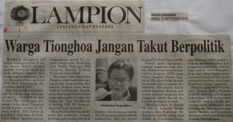 Prof. Hendrawan Supraktikno, MBA., PhD., politisi DPR RI, mengatakan bahwa warga Tionghoa tak hanya mampu terjun di dunia bisnis. Sudah saatnya mereka terjun ke dunia politik sebagai bagian dari warga negara Indonesia. Tak hanya di legislatif tapi juga di eksekutif. Sebab, mereka mempunyai kemampuan untuk itu.